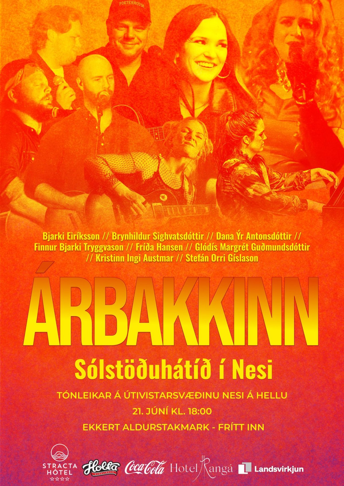 Árbakkinn - sólstöðuhátíð í Nesi verður haldin 21. júní næstkomandi kl. 18 á útivistarsvæðinu í Nesi á Hellu.