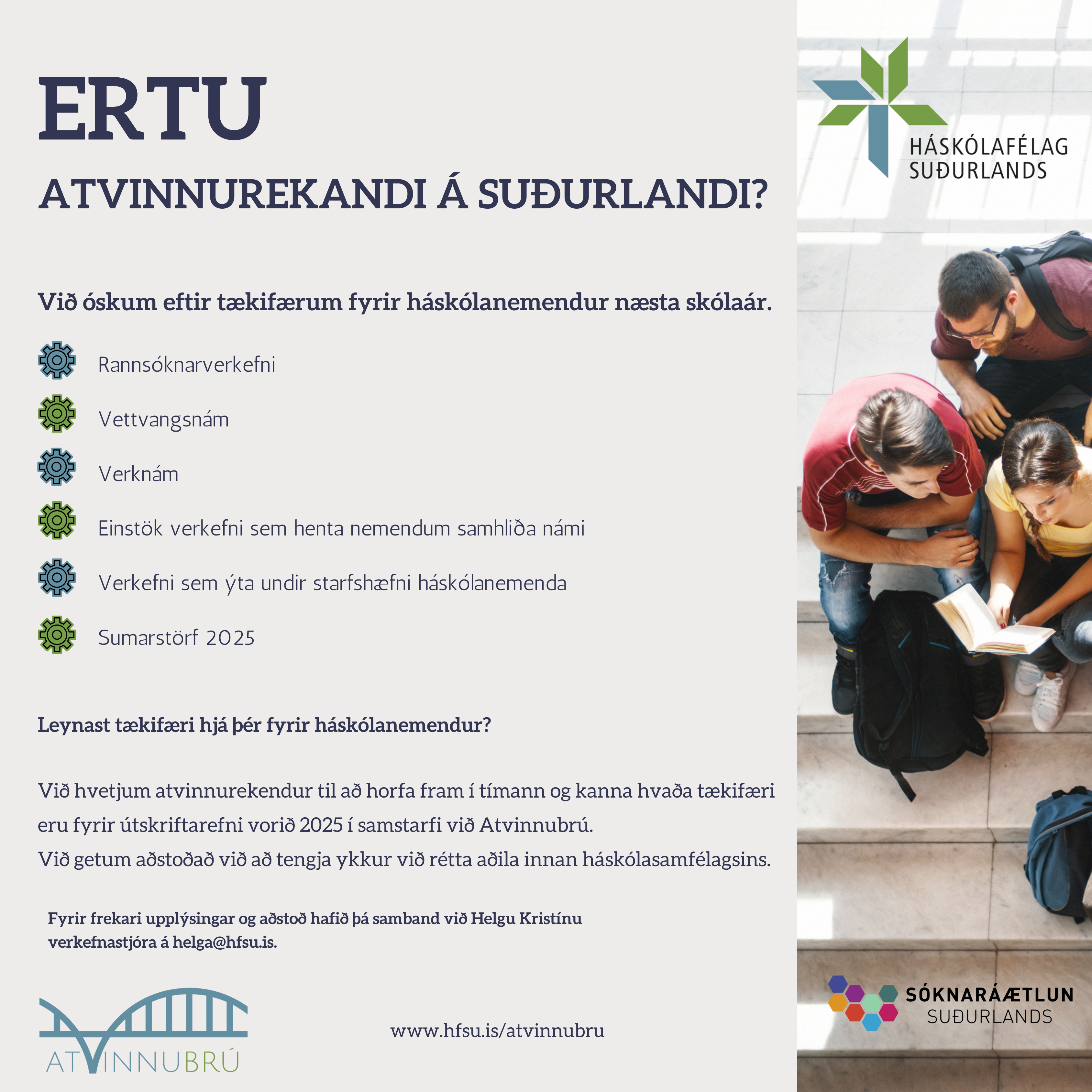 Nýverið lagði Háskólafélag Suðurlands fram beiðni til sveitarfélagsins um að kynna og hvetja íbúa og fyrirtæki sveitarfélagsins til þátttöku í áhersluverkefninu „Atvinnubrú“ sem félagið stýrir í samstarfi við SASS.