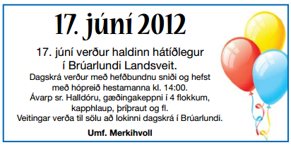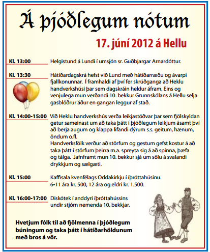 Þann 17. júní verður að venju haldið upp á afmæli lýðveldisins en staðið verður fyrir hátíðarhöldum á Brúarlundi, Hellu og í Þykkvabæ. Dagskrá á hverjum stað fyrir sig fylgir hér neðar í fréttinni. Íbúar eru hvattir til að taka þátt í hátíðahöldunum og gera sér glaðan dag.