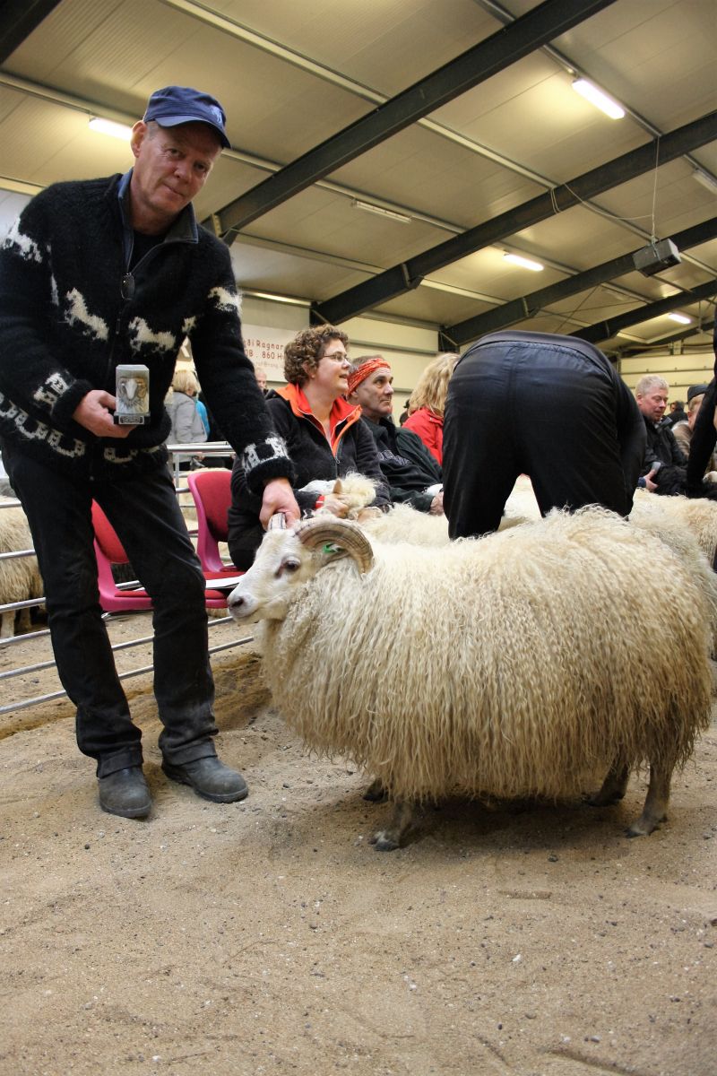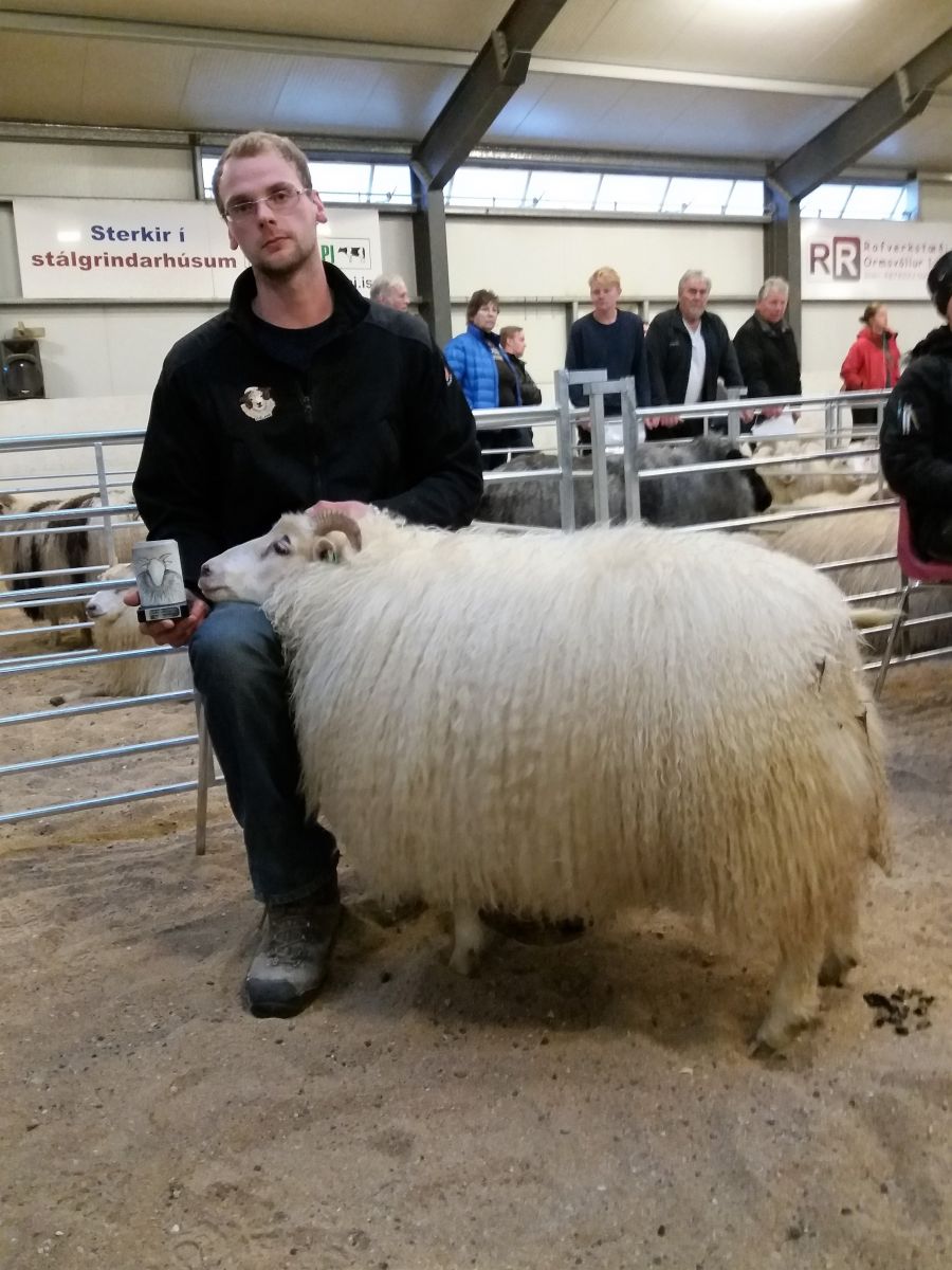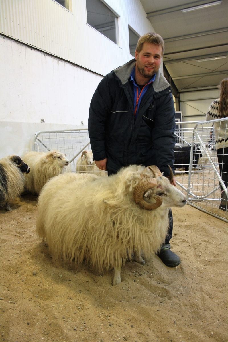 Jóhann Jóhannsson með efsta lambhrútinn.