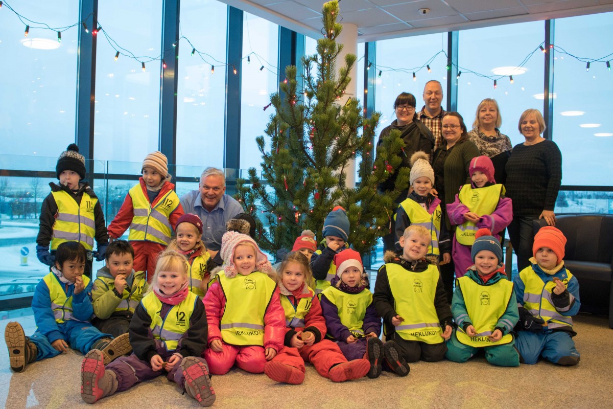 Drekadeild Heklukots kom færandi hendi í morgun með jólaskraut á jólatréð fyrir framan skrifstofuna á þriðju hæð Miðjunnar. Það er árlegur viðburður sem beðið er með eftirvæntingu að elsta deild Heklukots mæti til þess að skreyta tréð og hvernig skraut þau hafi útfært þetta árið.