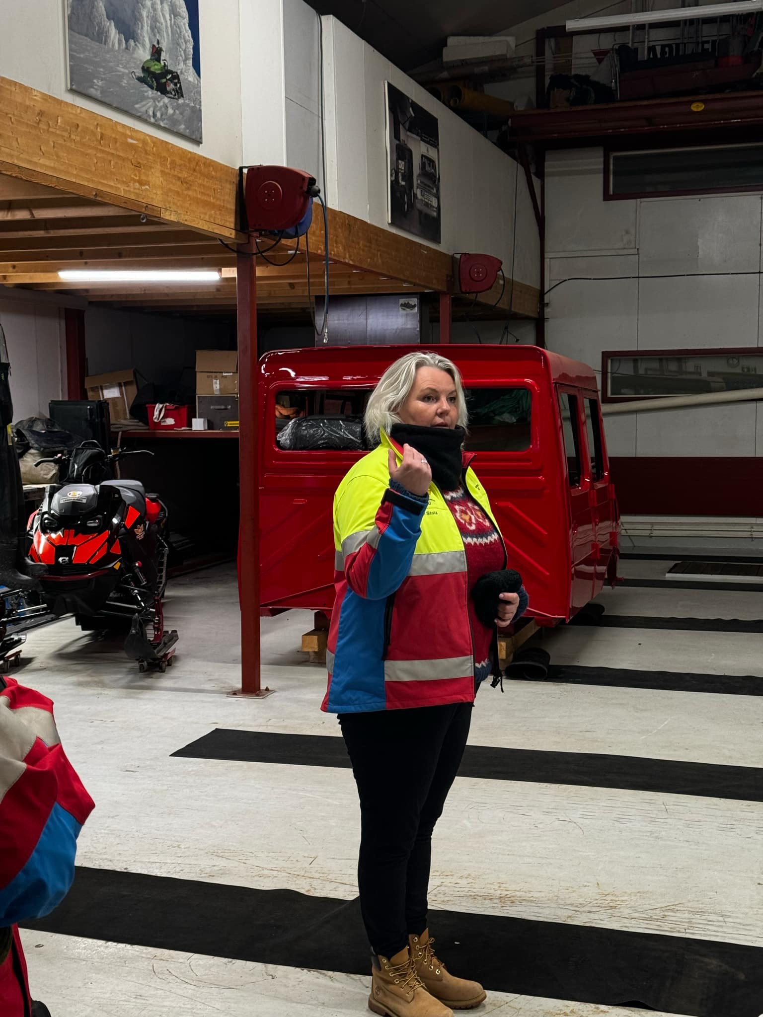 Elín, formaður Flugbjörgunarsveitarinnar á Hellu, ávarpar hópinn.