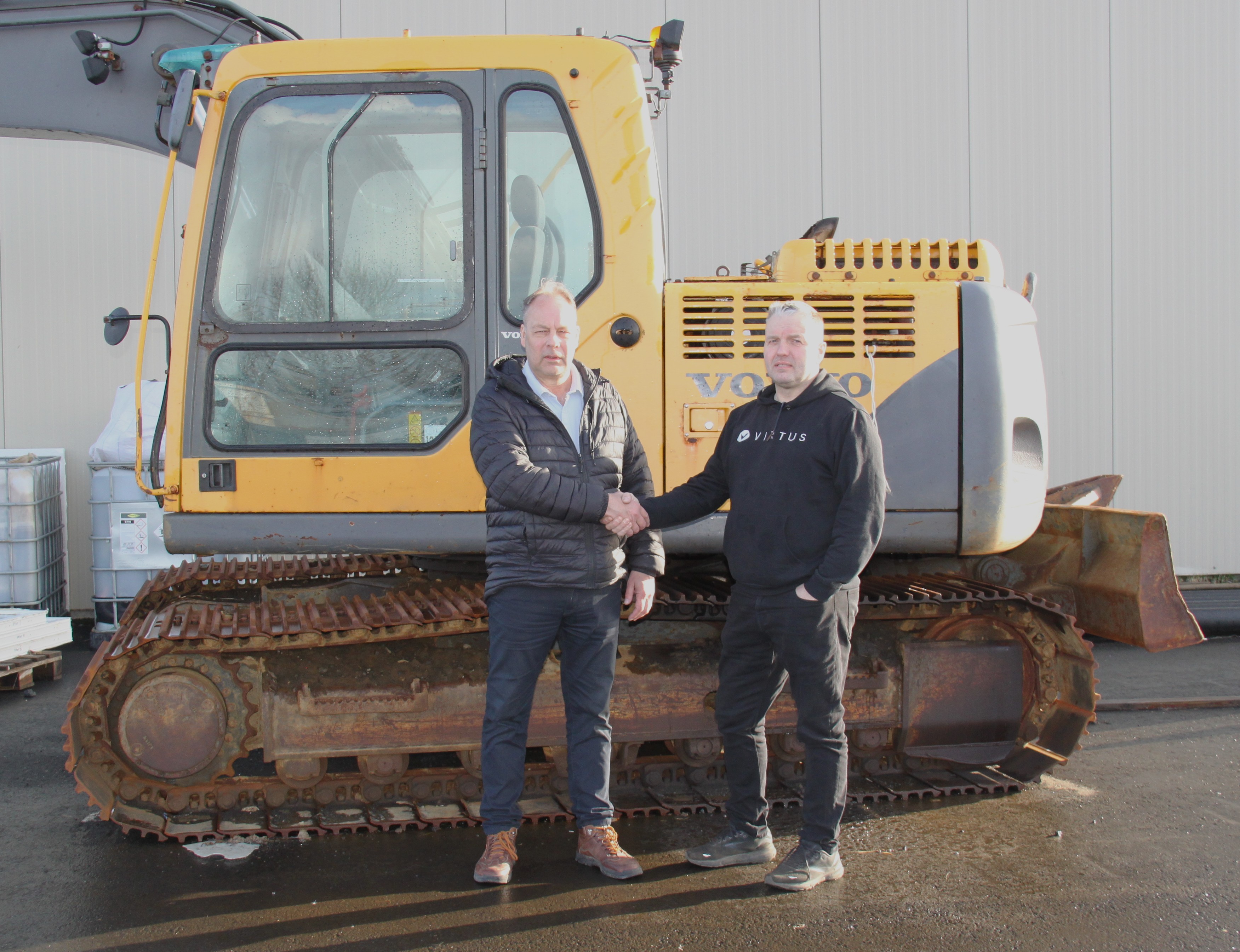 Eggert Valur Guðmundsson oddviti og Víðir Reyr Þórsson handsala ráðninguna.
