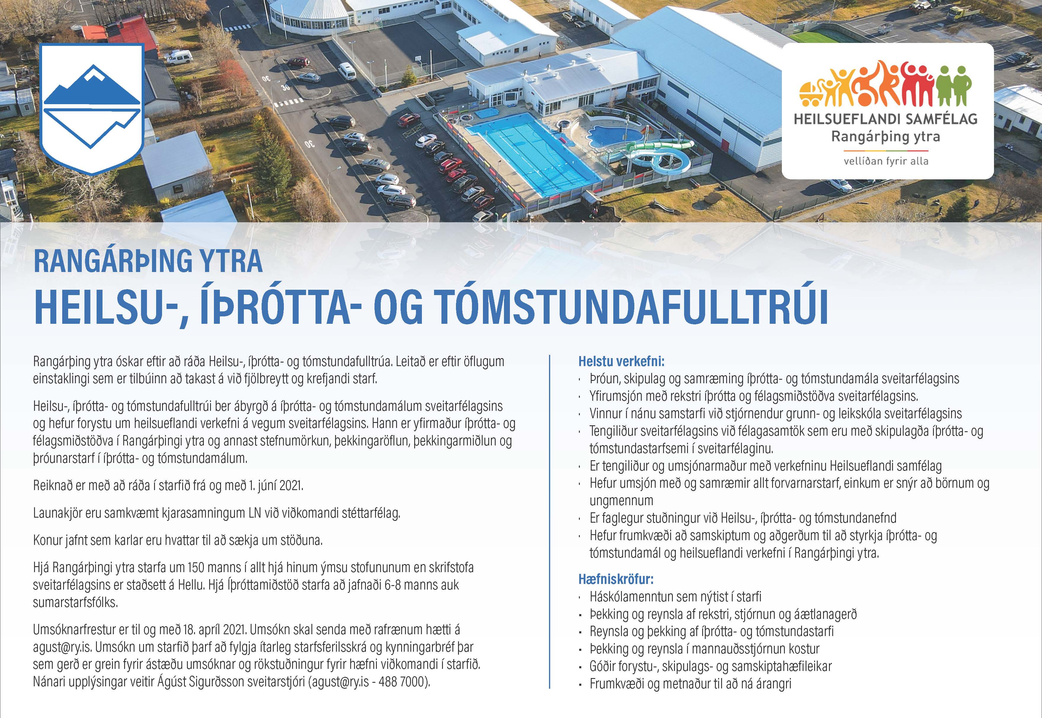 Rangárþing ytra óskar eftir að ráða Heilsu-, íþrótta- og tómstundafulltrúa.
