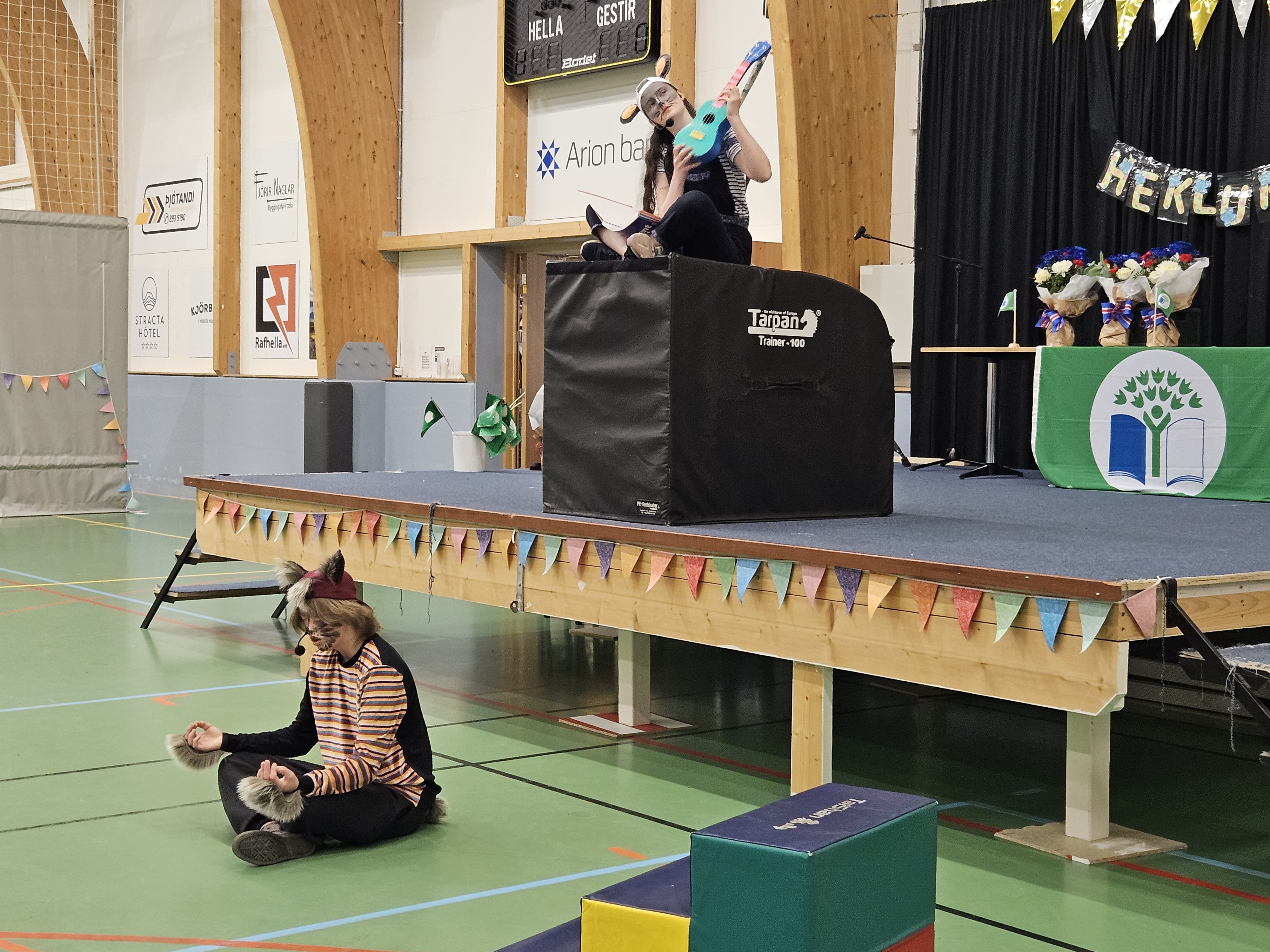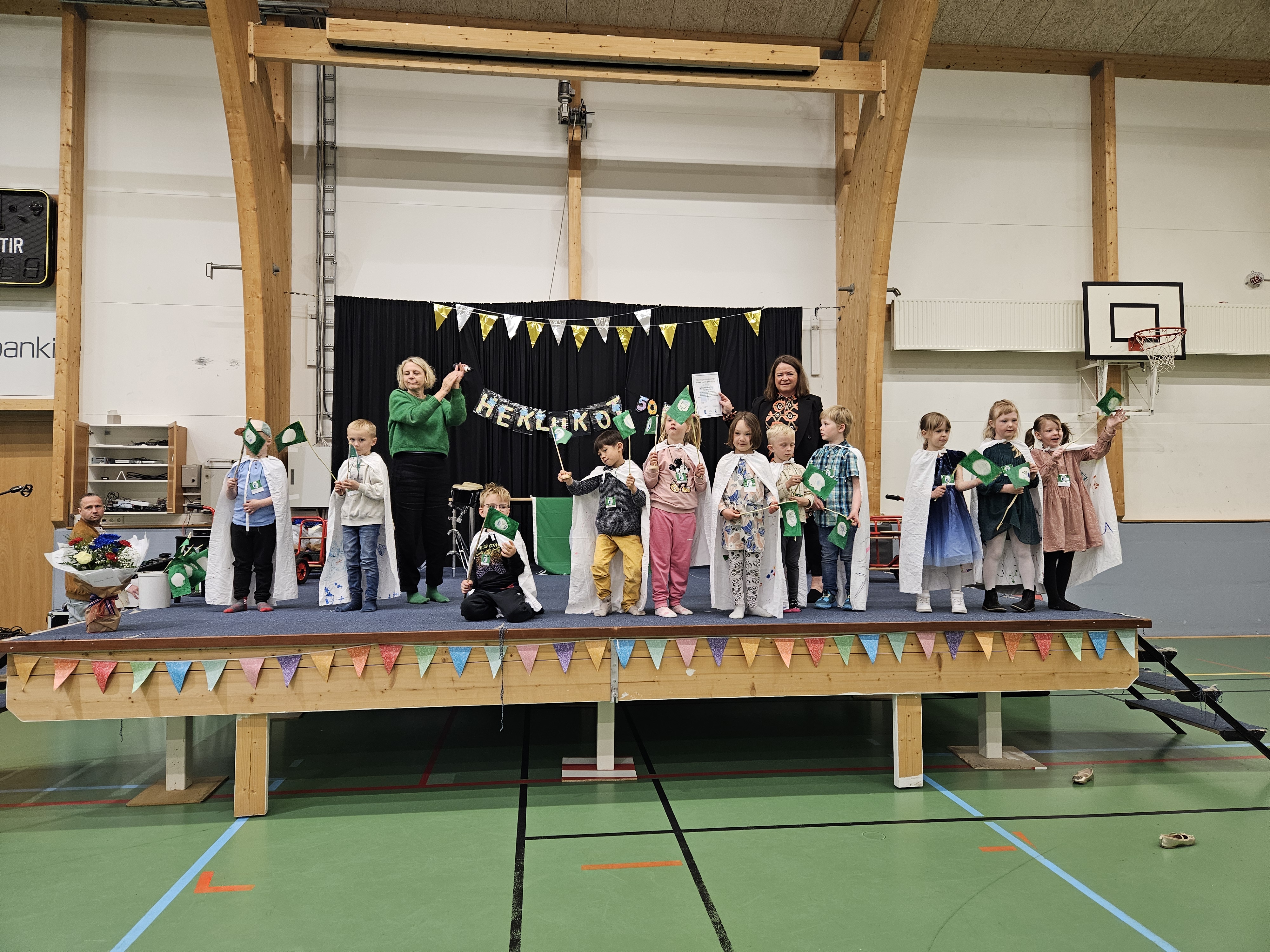 Gaman er að geta þess að tvær heiðurskonur fengu viðurkenningu á hátíðinni fyrir framlag sitt í þágu leikskólans. Það voru þær Sigurlína Magnúsdóttir, sem hefur saumað fjölnota þurrkur úr gömlum handklæðum fyrir leikskólann, og Helga Kristinsdóttir, sem hefur prjónað sokka og vettlinga á börnin.