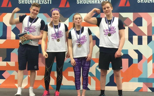 Liðið skipaði Jónas Hilbert Skarphéðinsson, Íris Þóra Sverrisdóttir, Jana Lind Ellertsdóttir og Smári Guðmarsson. Þau voru hvött áfram af frábæru stuðningsliði 8.-10. bekkinga sem stóð vaktina á hliðarlínunni allan tímann.
