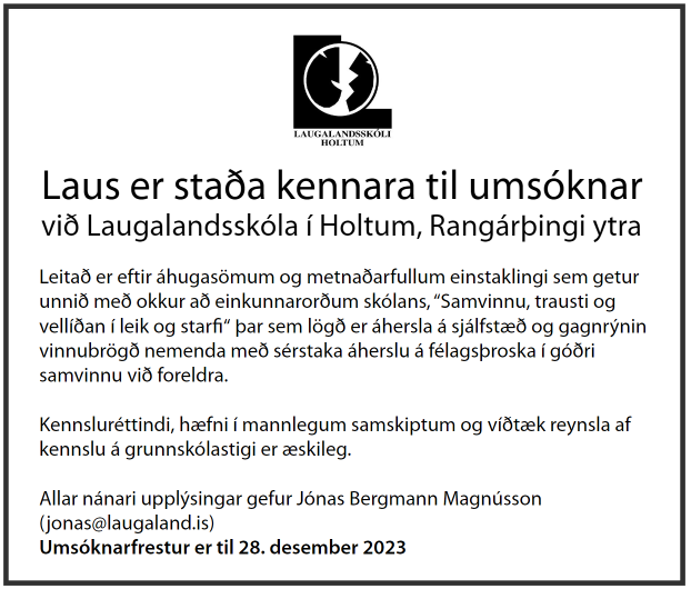 Allar nánari upplýsingar gefur Jónas Bergmann Magnússon (jonas@laugaland.is)