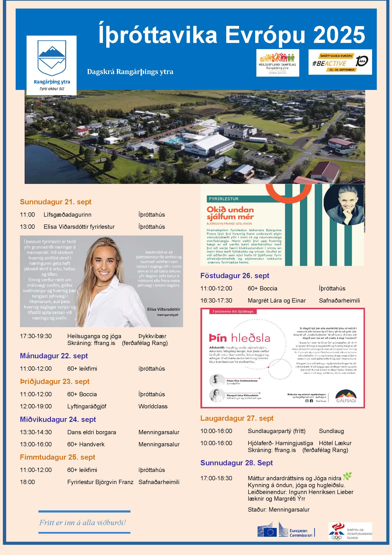 Fjölmargir viðburðir verða í boði í tilefni íþróttavikunnar og hvetjum við íbúa til að kynna sér málið og taka þátt.