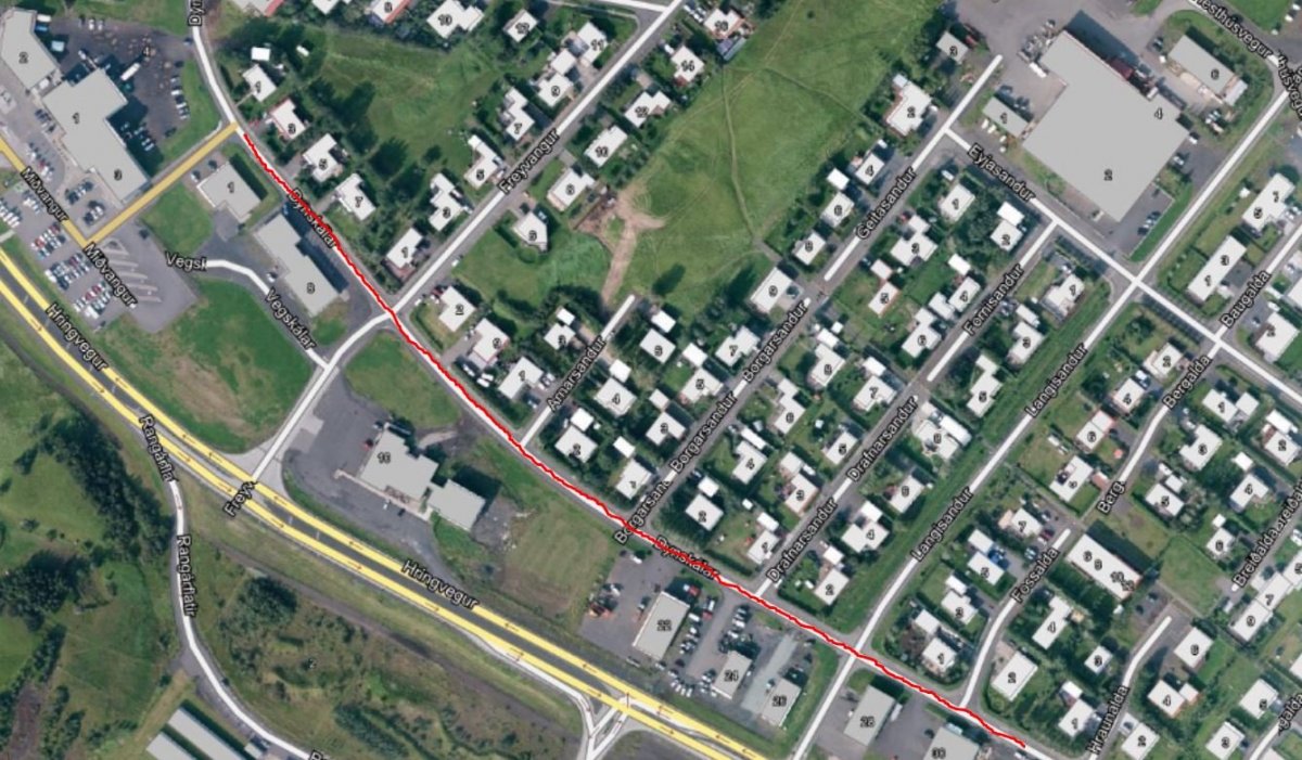 Freyvangur kemur til með að lokast við gatnamót að Dynskálum.