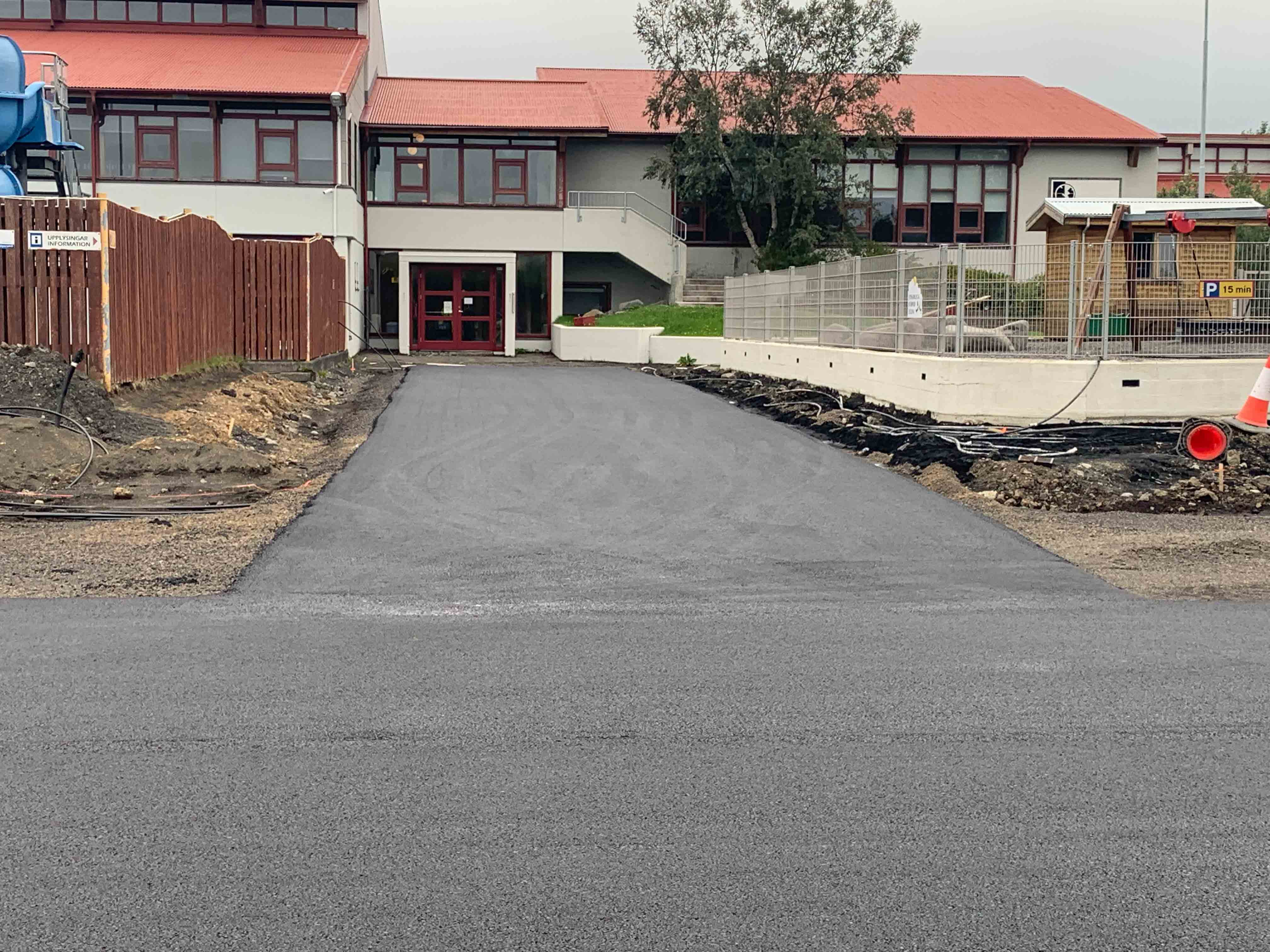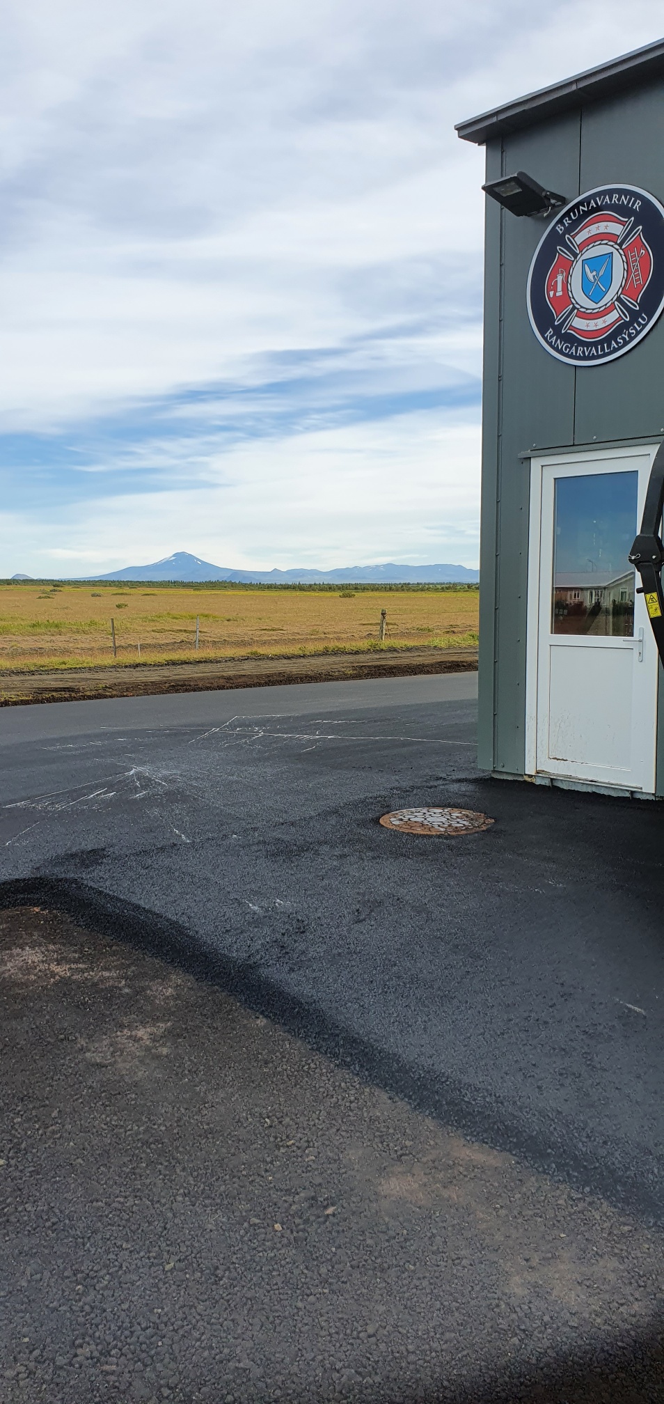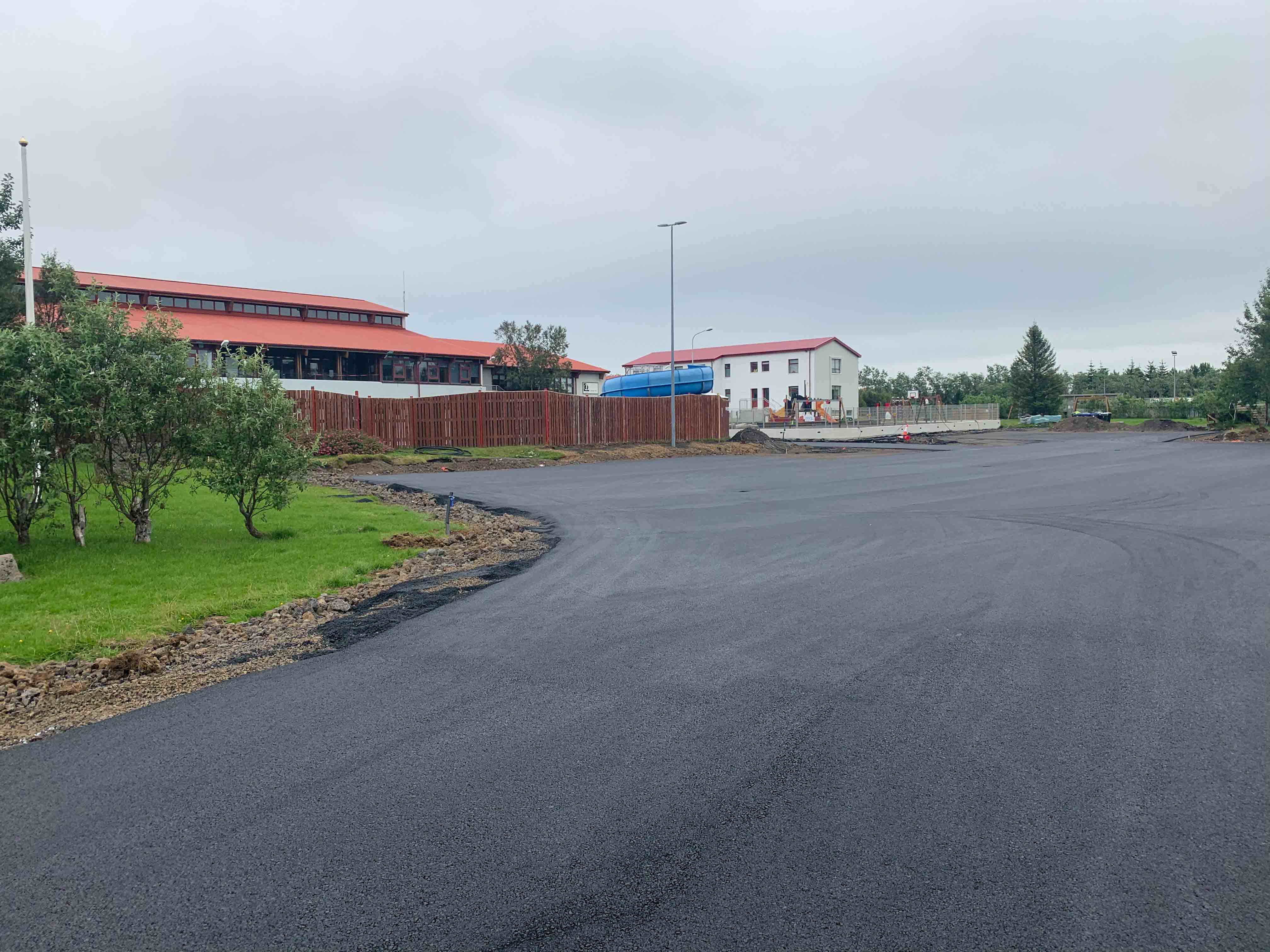Þessa dagana er góða veðrið nýtt til að ljúka ýmsum verkefnum fyrir haustið. Þannig var í vikunni lokið við að jarðvegsskipta og malbika bílaplanið sunnan við skólahúsin á Laugalandi. Þegar búið verður að ganga frá hellulögn og lýsingu verður aðstaðan orðin hin glæsilegasta. Í dag er svo verið að malbika plönin í kringum hina nýju slökkvistöð Brunavarna Rangárvallasýslu bs sem stendur við Dynskála 49 á Hellu. Með þessum framkvæmdum lýkur byggingu hinnar nýju slökkvistöðvar og ekkert því til fyrirstöðu að taka hana formlega í notkun núna á næstu vikum.