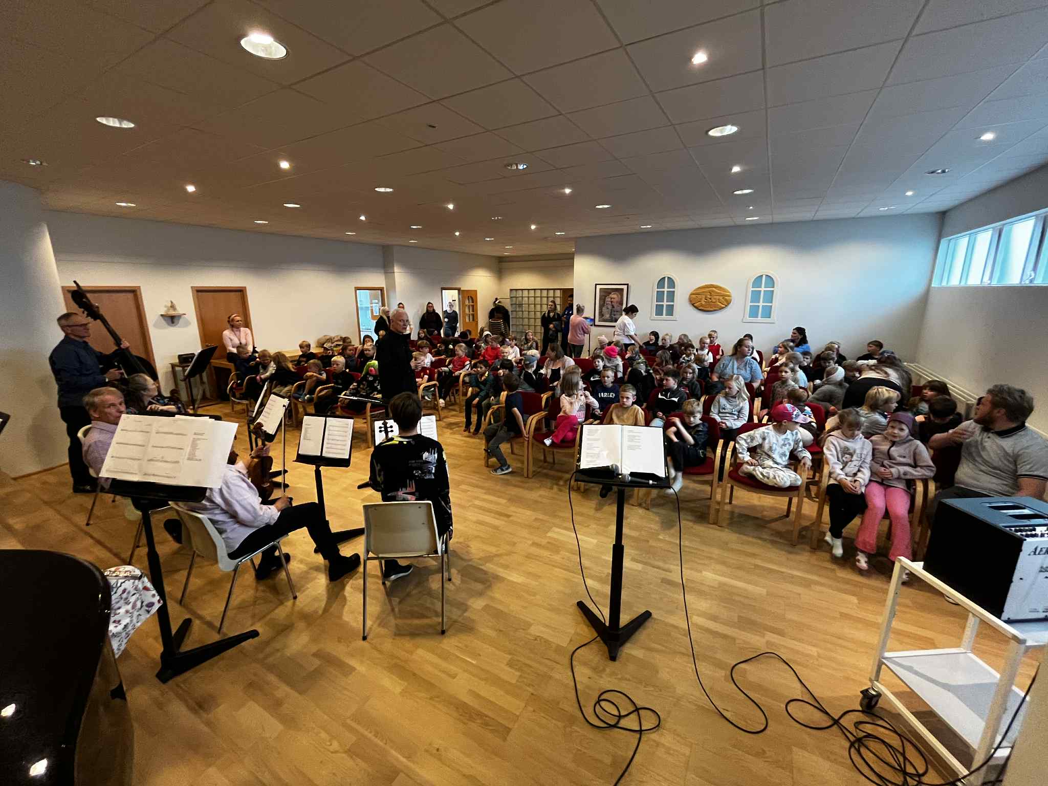 Sinfoníuhljómsveit Suðurlands ásamt Gunna og Felix í safnaðarheimilinu á Hellu