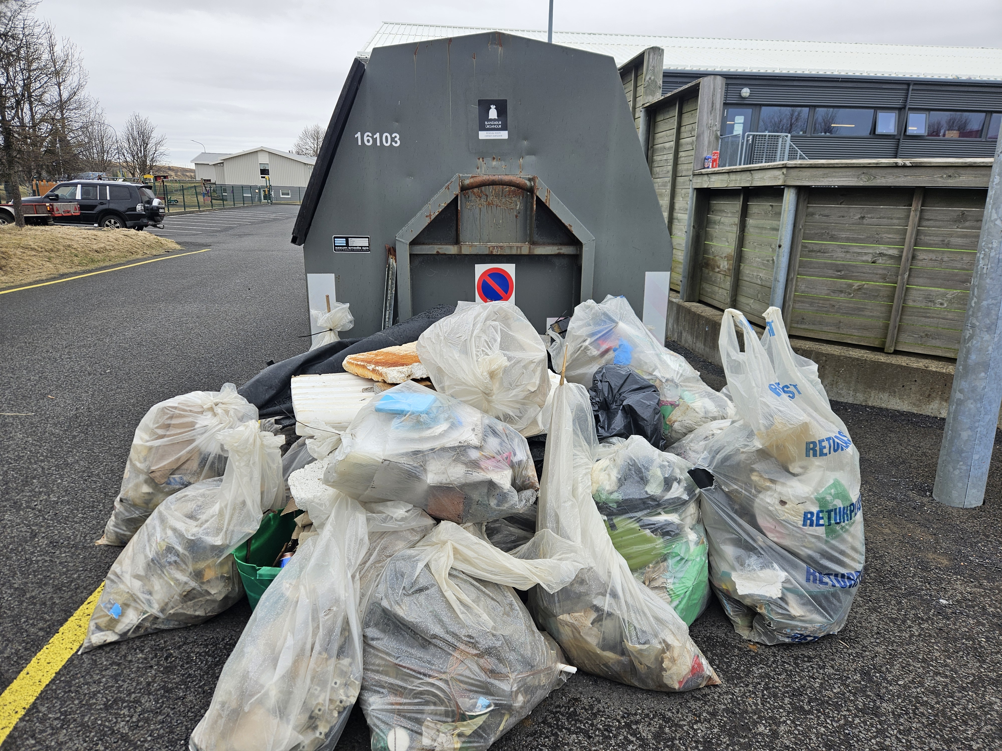 Mikið magn sorps endaði í pokum plokkara og var komið í gám sem Sorpstöð Rangárvallasýslu sá um að koma fyrir hjá sparkvellinum á Hellu.