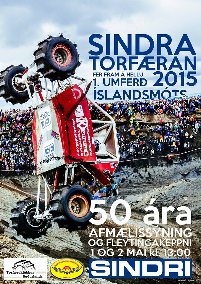 Föstudaginn 1. maí hefst Sindratorfæran á Hellu klukkan 13:00 og þar er um að ræða 1. umferð íslandsmótsinns í torfæru. Eknar verða 6 brautir og öllu til tjaldað. Um 20 keppendur eru skráðir til leiks sem munu etja kappi í ánni og mýrinni meðal annars.