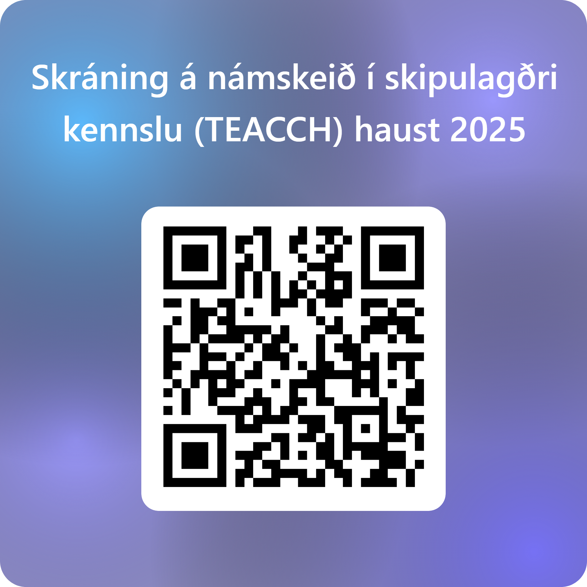 Lýsing: Námskeiðið er byggt á hugmyndafræði TEACCH. Á námskeiðinu er kynning á hugmyndafræðinni og aðferðum skipulagðrar kennslu. Fjallað er um hvernig aðferðir hugmyndafræðinnar stuðla að sjálfstæði og frumkvæði einhverfra einstaklinga. Nýttar eru leiðir sem ýta undir að umhverfi og aðstæður mæti þörfum einhverfra, stuðli að vellíðan og til að kenna nýja færni. Þó að aðaláherslan sé að einhverfu þá getur hugmyndafræðin nýst til að mæta einstaklingum með aðrar greiningar og þarfir. Námskeiðið byggir á fyrirlestrum, mynddæmum, umræðum og þjálfun þátttakenda. Unnið er í hópum þar sem þátttakendur æfa sig í að nýta hugmyndafræðina og verkfæri hennar.