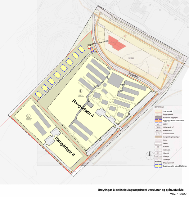 Efri myndin sýnir gildandi deiliskipulag en sú neðri sýnir stækkunaráætlun Stracta.