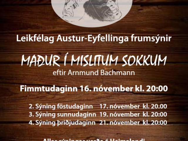 4. sýning af leikritinu Maður í mislitum sokkum ferður sýnd í félagsheimilinu að Heimalandi 21. nóvember kl 20:00
